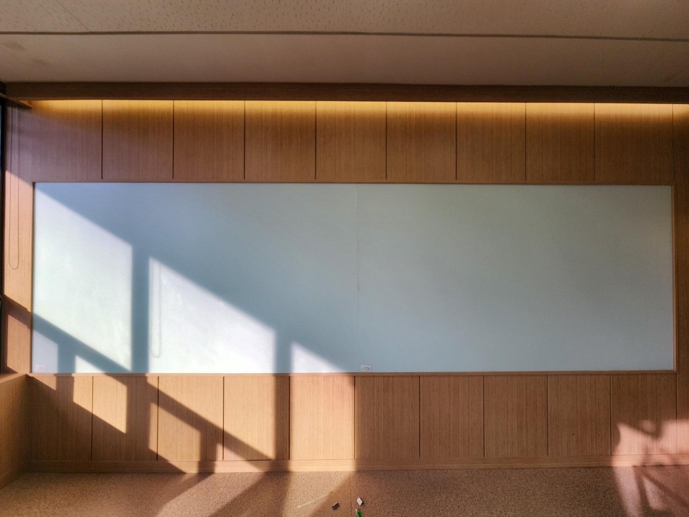 벽면에 설치된 칠판은 빔프로젝터 사용에 시각적으로 매우 효과적으로 일반유리와는 달리 반사율이 낮아 외부 광원의 간섭을 최소화하며, 화면에 투영되는 내용을 더욱 선명하게 보여줍니다. 따라서 어떤 각도에서도 화면의 내용을 잘 볼 수 있어 정보전달에 유리합니다!